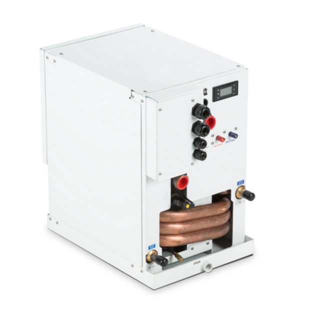 Dometic MCGX modular chillers use titanium condensers to greatly increase durability and product lifespan. Titanium is unaffected by the punishing combination of saltwater, invasive marine life, and the harsh acids used for routine cleaning of the condenser coil. Titanium extends service life and is unaffected by the corrosion and erosion of the harsh marine environment.