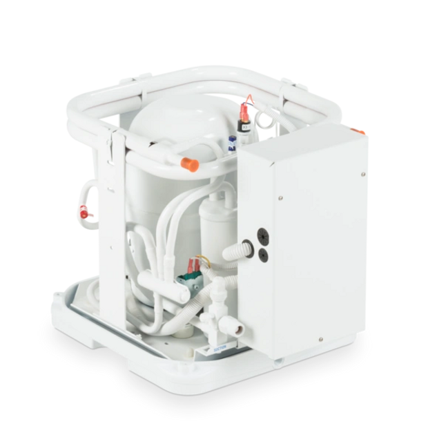 The Dometic RX12C-417 Series Condenser is the next generation of seawater-cooled, cooling and heating units in marine applications. Designed for installation in the vessel's engine room or other mechanical space. It is not affected by moisture, normal vibration, or ambient temperatures up to 140 ° F (60 ° C). No ventilation is required. It can be installed with up to two Dometic cooling units, where the total capacity is equal to the condensing unit capacity. In cooling mode, full performance is possible in seawater up to 90 ° F (32 ° C).While heating, the unit functions in seawater as cold as 40 ° F (4.4 ° C).